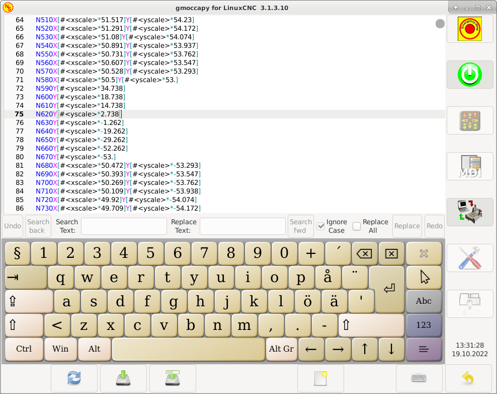 GMOCCAPY 3 has been tested on Debian Jessie, Debian Stretch and MINT 18 with LinuxCNC master and 2.8 release. It fully support joint / axis changes of LinuxCNC, making it suitable as GUI for Scara, Robots or any other config with more joints than axes. So it supports also gantry configs. If you use other versions, please inform about problems and / or solutions on the LinuxCNC forum or the German CNC Ecke Forum or LinuxCNC users mailing list.