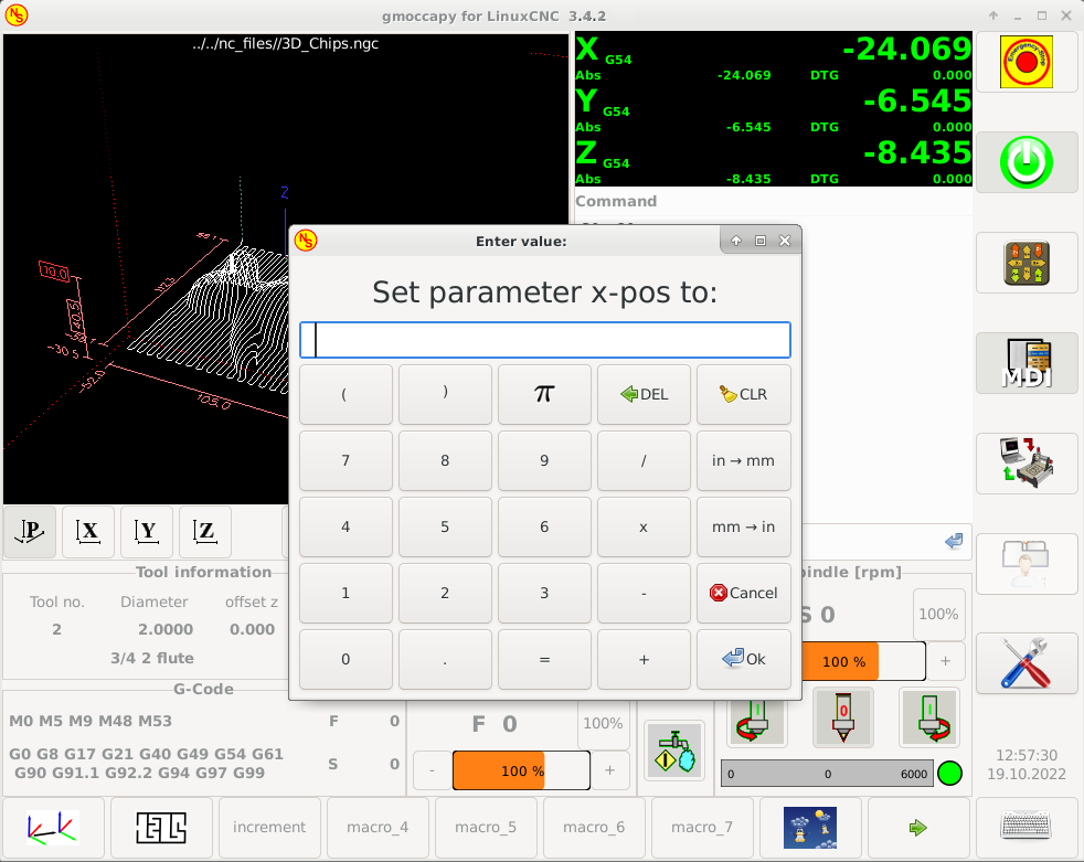 GMOCCAPY is a GUI for LinuxCNC, designed to be used with a touch screen, but can also be used on normal screens with a mouse or hardware buttons and MPG wheels, as it presents HAL Pins for the most common needs. Please find more information in the following.